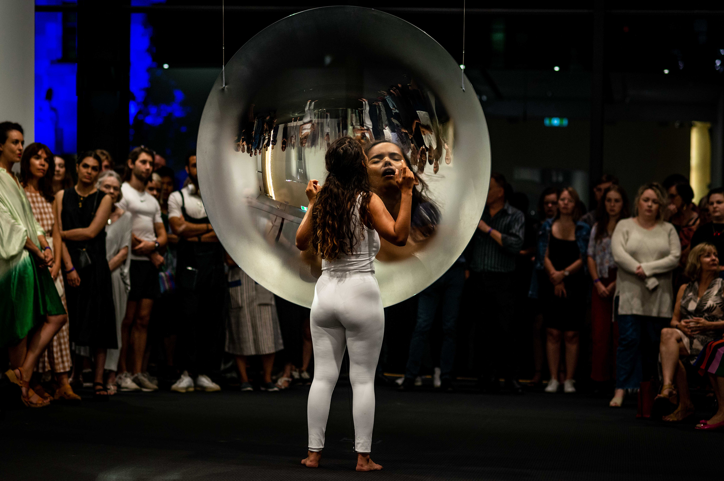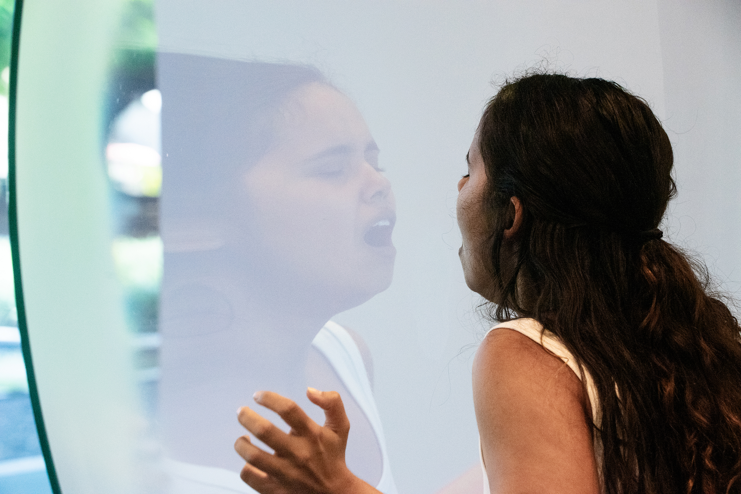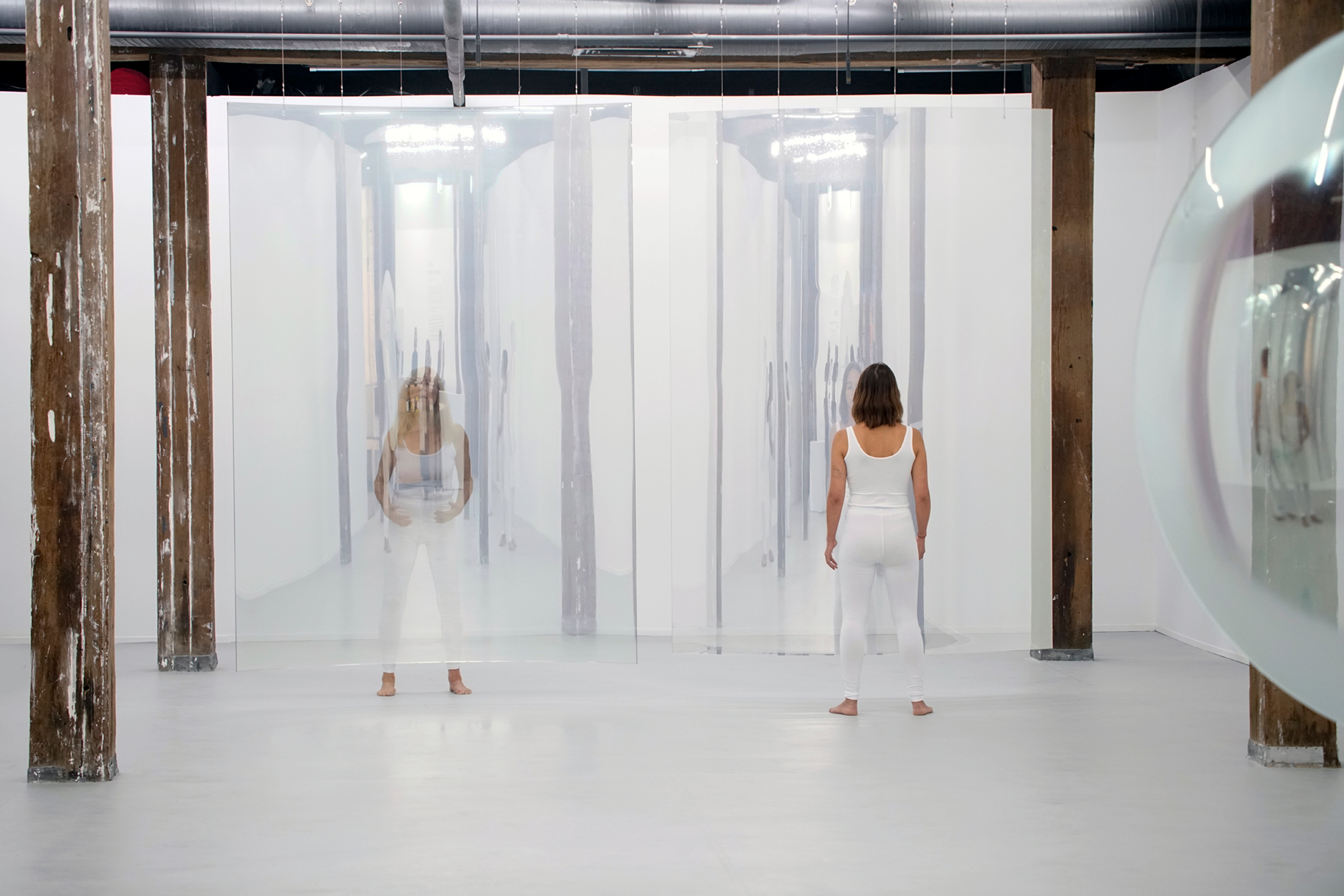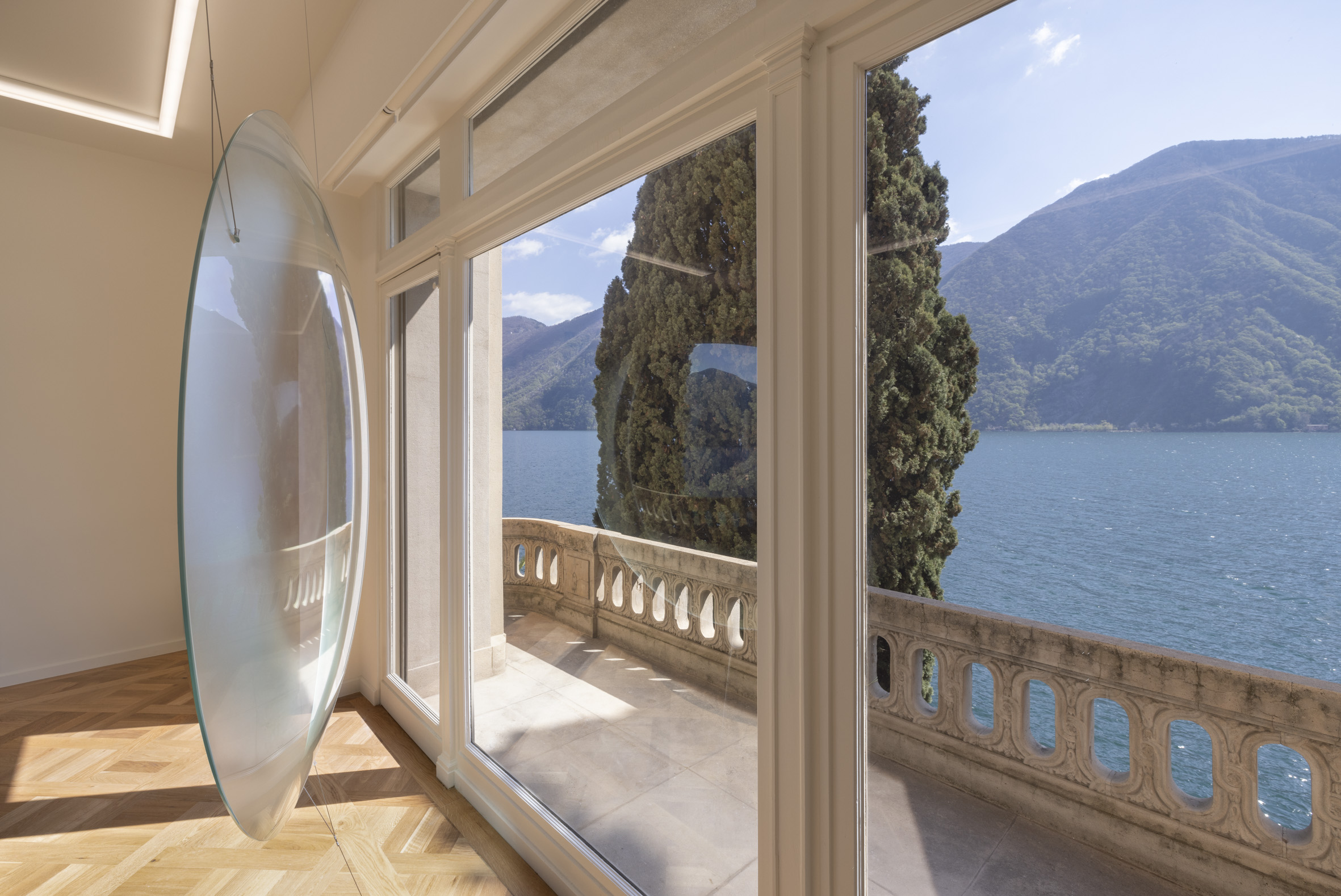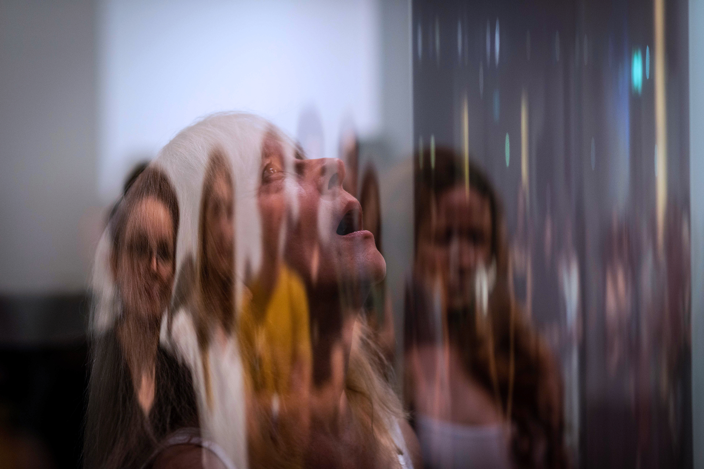 An almost transparent installation, capturing and reflecting all the variations in colors and light emanating from the lake, 'Respire, Respire' proposes instruments of communication with our own body, which dialogue with the surrounding landscape at the same time. The study of rituals in different civilizations, led for a long time by Mel O‘Callaghan, often takes a deep desire for communion with the human and vegetable or mineral forms that inhabit our planet as a starting point, and makes them resonate with each other and within ourselves. Through a collection of sculptures, films, paintings, and performances, the artist often explores the immersive power of trance but also, paradoxically, this way of being able to go “outside oneself,” the limits of one’s own body, to reach a state of symbiosis with what surrounds us, just like memory, gesture, and transmission. Thus, facing the lake, these crystal capsules reflect, deform, and transform the space into almost liquid matter by playing with prisms of color. The shapes of the sculptures themselves, round, elongated, convex and concave, are freely inspired by the observation of extremophiles—underwater organisms thriving in so-called “extreme” conditions—which she also captures in the film ‘Centre of the Centre’ (2019), tracing the origins of life and its regenerating forces. Therefore, it is life that we are talking about here, above all. The titles of the works thus set the tone and dictate a rhythm. ‘Respire, Respire’ thinks about the foundation of all life and exposes breath, both as an elementary impulse and as a source of connection to the abundant depths. In collaboration with Sabine Rittner (associate researcher and music therapist at the Institute of Medical Psychology at the University Hospital of Heidelberg in Germany), the artist has imagined a performance based on inhalation and exhalation techniques, aiming to provoke joy or serenity, but also and above all to provoke altered states of consciousness and moments of meditation, ecstasy, or hallucination. In a crescendo of intensity, the work of art becomes global. The landscape opens and diaphragms too; the sound of the performer’s breaths pulsates through the works as well as the hearts of visitors.