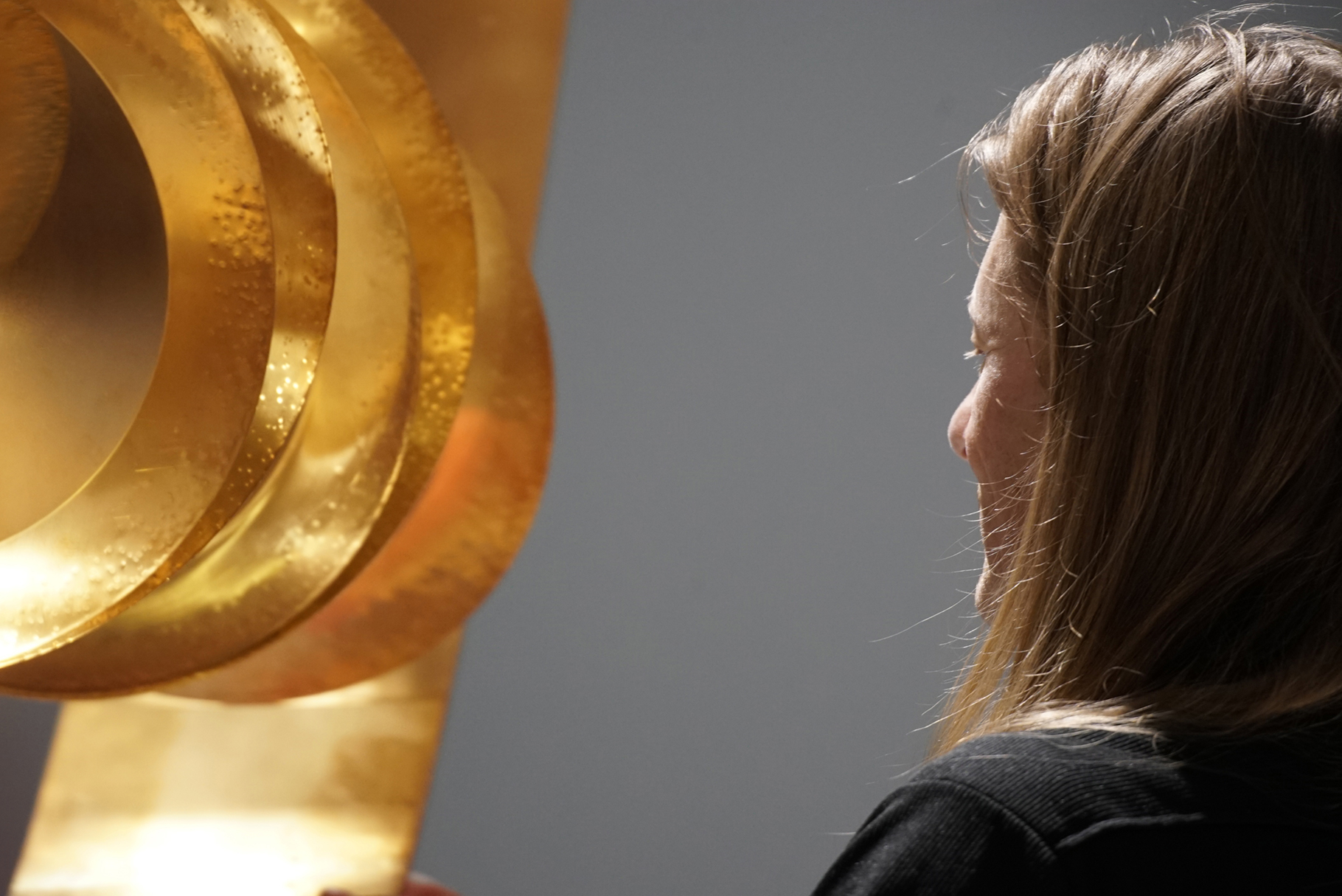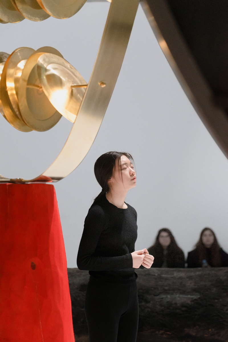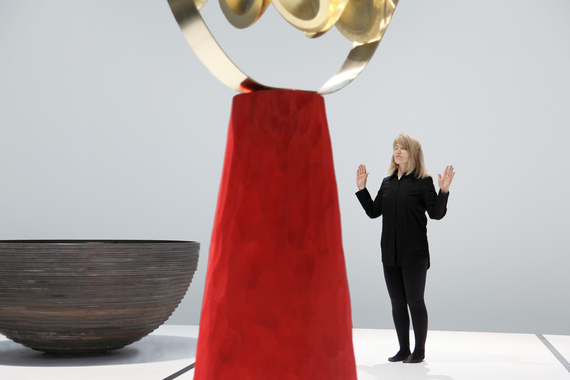 Sculptures which have the capacity to bring about altered states of consciousness in To Hear With My Eyes allow us to feel their underlying power. Each day, silhouettes dressed all in black come to activate these objects, following the precepts theorised by anthropologist Felicitas D. Goodman about alterations in consciousness achieved through 'Ritual Body Postures'. Repetition, in gesture and in vision, is at the heart of Mel O’Callaghan’s work - and allows us to access meditative states. The artist invents rituals that are at once physical and conceptual, and present the visitor with the opportunity to not only continually transform their relationship to the work but also to the world.